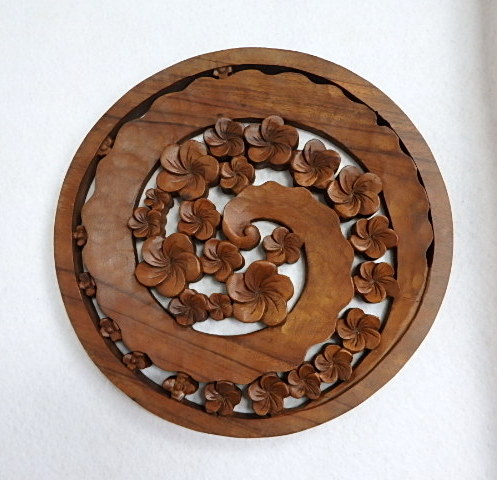 Drevená dekorácia na stenu Mandala SPIRAL KVET, rozmer 30,40 a 60 cm, exotické drevo SUAR, hrúbka dreva 2 až 2,3 cm. Mandala je ručne vyrobená v Indonézii. Je to ručná práca "majstra" - najvyššia kvalita, nazývaná aj "Masterpiece". 3D kvalita. Vhodná ako darček.