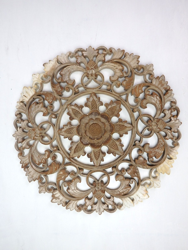 Drevená dekorácia na stenu mandala, ručne vyrezávaná o priemere 50 cm. Predstavuje kvet lotosu. Krásu a výnimočnosť tohto diela znásobuje kresba dreva. Vyrobené z exotického dreva SUAR. Hrúbka dreva 2 cm. Dovoz Indonézia.