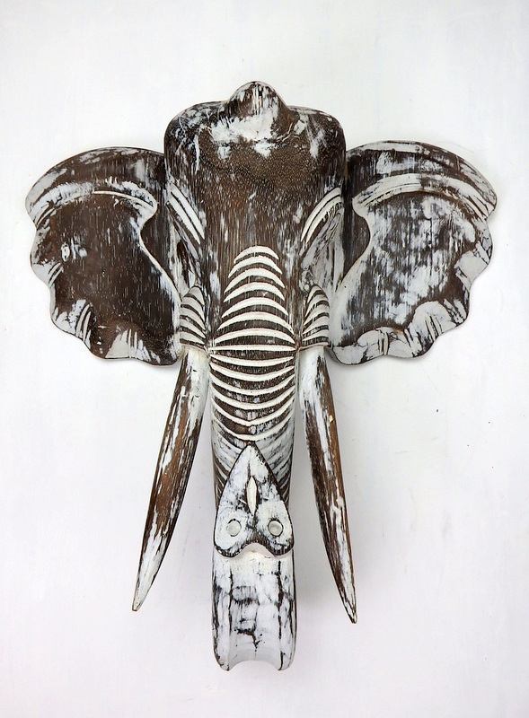 Krásna moderná exotická dekorácia na stenu predstavuje sloniu hlavu. Veľmi pekná hnedo - biela kombinácia mu dodáva nádych jednoduchosti. Vyrobené a maľované ručne - exotické drevo ALBESIA. skladom v dvoch veľkostiach: