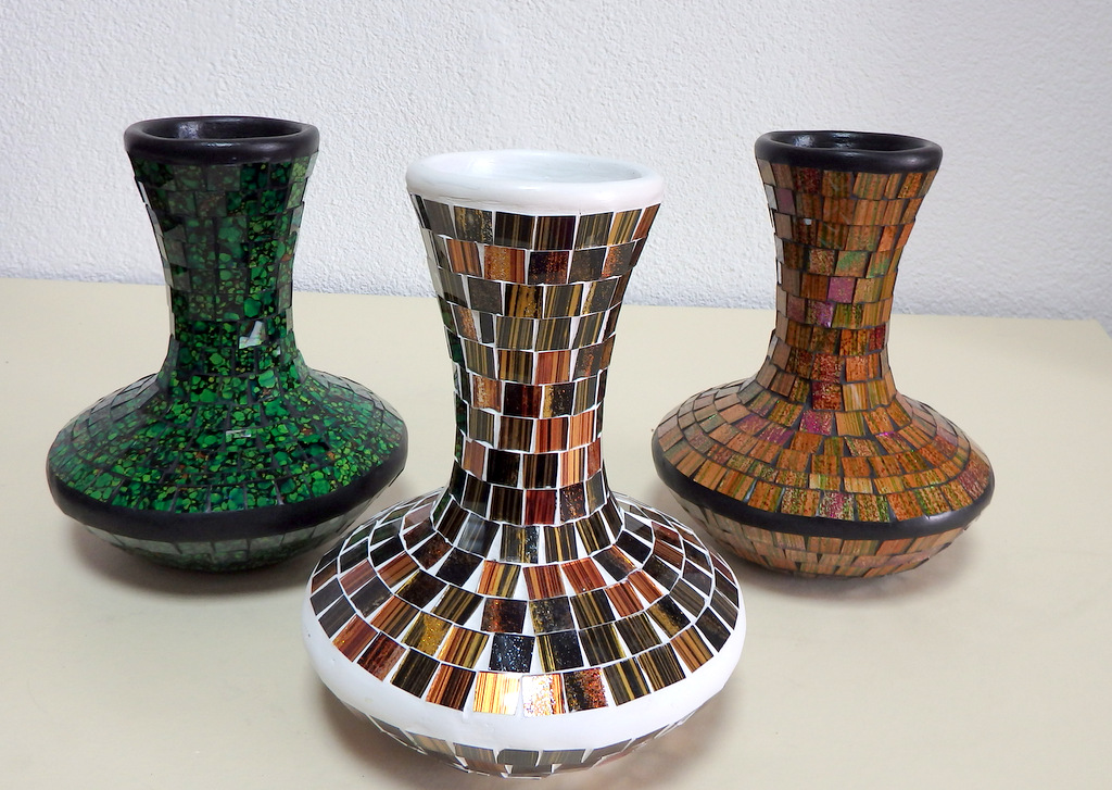 Krásne farebné vázy zdobené ručne malovanou mozaikou. Pekné farebné kombinácie Vás určite nadchnú, hnedé a zelené odtiene sú farbami prírody a pôsobia na človeka ukľudňujúco.. Vázy máme v dvoch veľkostiach: 24 cm výška a šírka 20 cm alebo 27 cm výška a šírka 24 cm. Dovoz Indonézia. Váza je vhodná len na suché kvetinové dekorácie.