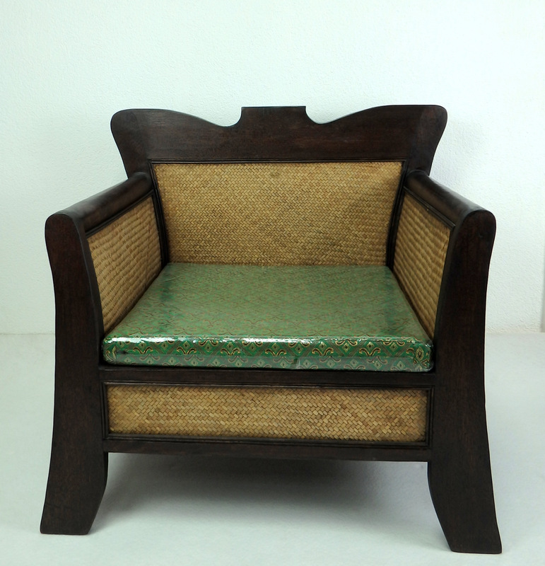 Drevené kresielka z Thajska, z exotického dreva palmy v kombinácii s ratanom. Ručná práca. Matrac zeleno-zlatá farba, na zips - možnosť prania. Kreslá sú veľmi pekne vypracované z každej aj zadnej strany, takže je možno umiestniť ich aj do priestoru. Rozmer: šírka 88 cm x hĺbka: 60 cm , výška zadného operadla 82 cm. Kresielka predávame len spolu dva kusy .