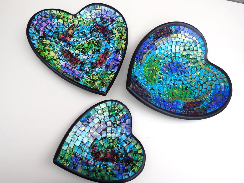 Miska SRDCE - modrá/zelená, ručná mozaikaskladom 3 kscena od 29 EUR/ ks