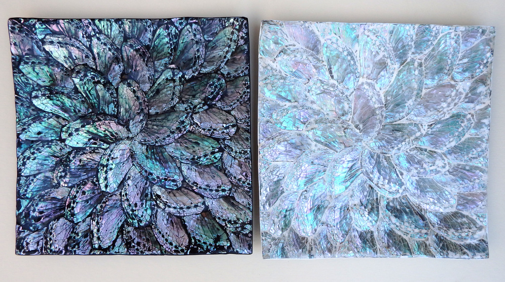 Podnos vyrobený ručne z perlete z mušlí Indického oceánu. Podnos krásne hrá farbami ružovej, zelenej a modrej. Luxusný darček pre každého. Podnos je obojstranne vyzdobený perleťou, rovnaký tak z vrchnej aj spodnej strany. Farba čierna a biela, Rozmer 29x29 cm, rohy sú mierne zdvihnuté 2 cm. V ponuke aj iné tvary a veľkosti.