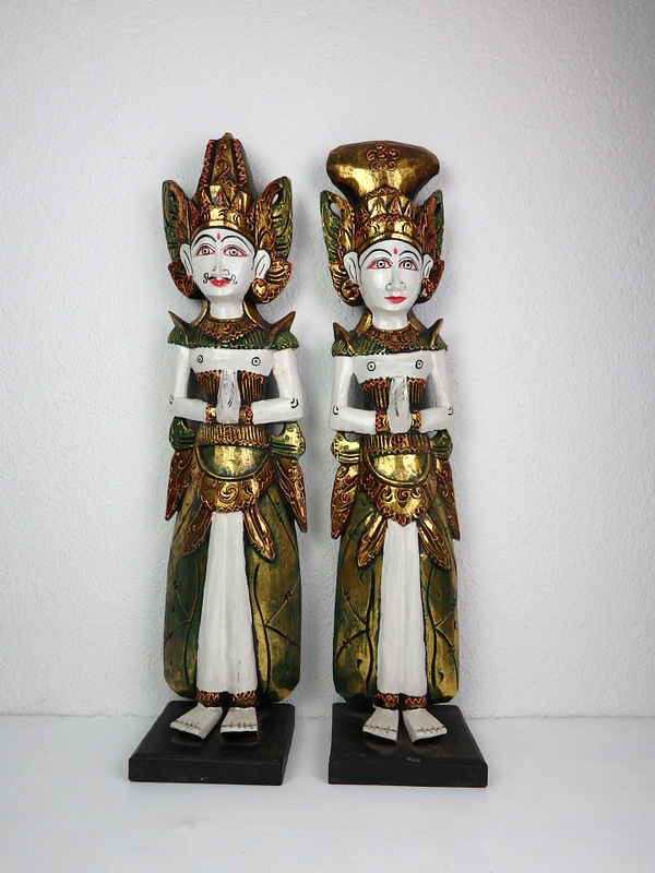 DUO - dve sochy veľkosti 70 cm predstavujú hlavné postavy zamilovaného príbehu Rámu a Situ. Ručne vyrezávané z dreva Albesia, v krásnom farebnom prevedení v bielo zlatej kombinácii. Zadná strana sošiek je hladká . Predávajú sa spolu ako pár za 289,00 euro.