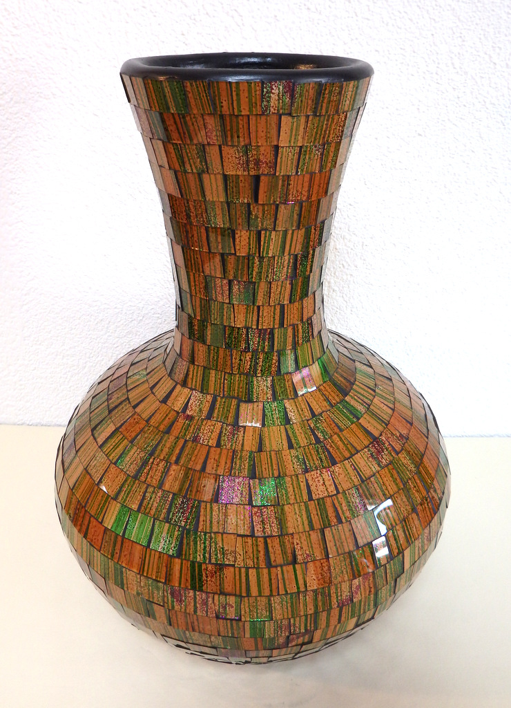Krásna hnedá khaki mozaiková váza, ručná sklenená mozaika - plný guľatý tvar. Každá váza je ručná keramika aj sklenená mozaika, preto ani jedna nie je rovnaká tvarom ani vzorom. Každá je jedinečný ručný originál. Vyrobené v Indonézii. Ak vo vašom interiéri niečo chýba, možno toto je tá posledná bodka, ktorá mu dodá exotickú originalitu a šťavnatú farbu. Vázu používajte na suchú kvetinovú dekoráciu, prípadne na vodu použite plastovú náplň.