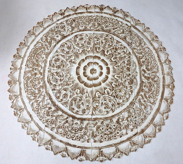 Ručne vyrezávaná mandala z teaku,120 cm, biela patinaskladom 1 ks895 EUR/ ks
