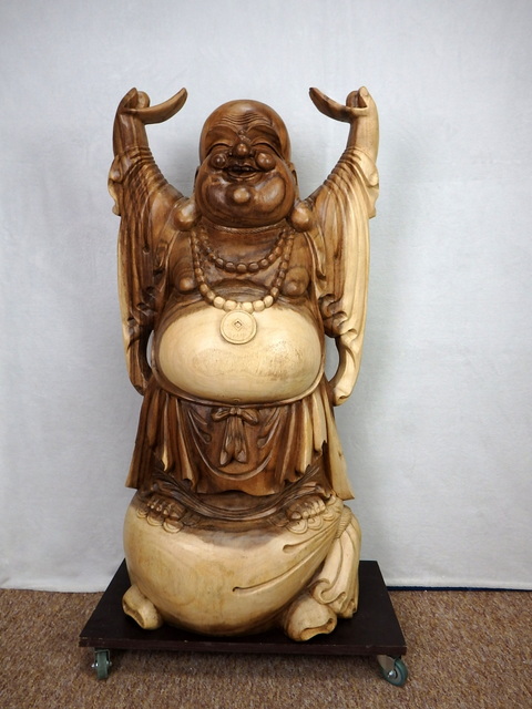 Unikátna socha Happy Budha z exotického dreva SUAR ktoré vyniká svojou dvojfarebnosťou. Socha je vysoká 1 meter a váži 57 kg. Šírka je 50 cm, hrúbka 29 cm.